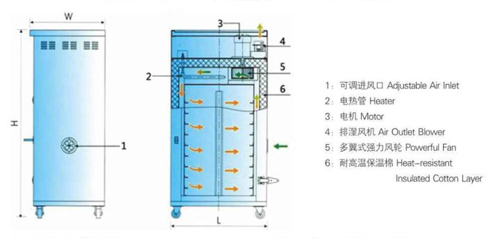 箱形干燥机主要用于干燥塑胶原料,可同时对多种原料进行干燥,尤其适合于少量多样或测试用的原料之干燥;用于塑料成型后之回火处理时,可以增强产品韧性,提升品质;也可用于农产品(茶叶、花粉等)或电子、电机、电镀、烤漆及印刷等相关行业产品的预热及干燥处理。