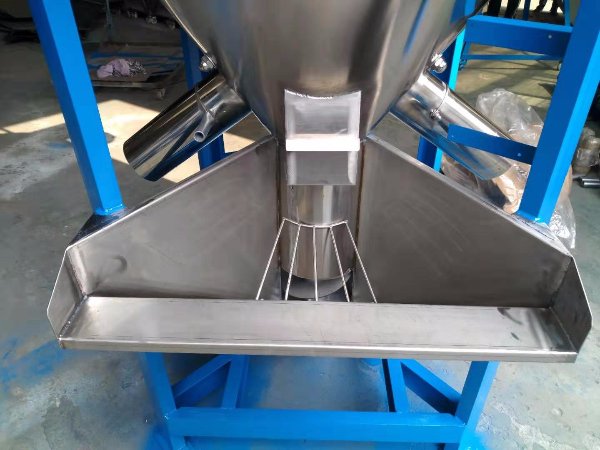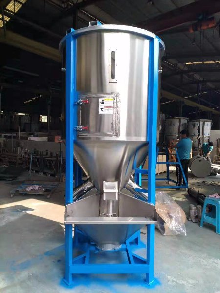 通过螺杆旋转将原料从桶内底部提升至顶端再以伞状飞抛散落回至底部,这样原料在桶内上下翻滚搅拌,短时间内可将大量的原料在桶内均匀的混合完毕.